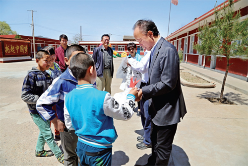 2006 年由省委組織部扶貧工作隊(duì)和省僑辦牽線搭橋,由海外華人創(chuàng)建的欣欣教育基金會向靜樂縣康家會小學(xué)捐贈一萬美元資助建設(shè)新校舍,新校舍于2006 年8 月份投入使用。5 月17 日,該基金會副會長丁永慶一行深入靜樂縣,走訪基金會當(dāng)年捐建的康家會小學(xué)。圖為基金會工作人員在和學(xué)生交談,了解學(xué)校現(xiàn)在存在的問題和困難,希望與該校保持長期固定的聯(lián)系,以便進(jìn)一步的交流和幫助。(閆曉梅 攝)