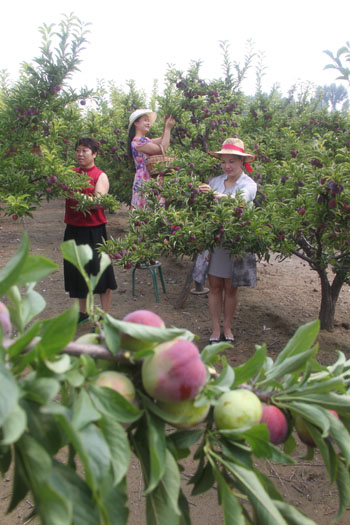 7月24日,原平市新原鄉(xiāng)新華街村永豐農(nóng)家生態(tài)園里碩果累累,紅彤彤的李子掛滿枝頭,該市大力發(fā)展高效生態(tài)觀光旅游農(nóng)業(yè)種植業(yè),有效促進(jìn)農(nóng)業(yè)增產(chǎn)農(nóng)民增收,加快奔小康的步伐,實(shí)現(xiàn)致富夢(mèng),這是游人們正在這里拍照采摘購(gòu)買(mǎi)新鮮的李子。農(nóng)民們高興地說(shuō):“栽下?lián)u錢(qián)樹(shù),脫貧能致富。”(趙月仁攝)