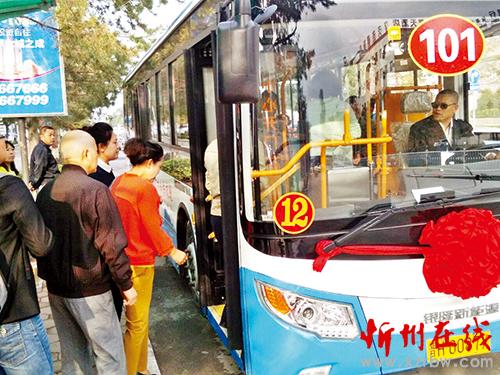 圖為19日清晨,市民排隊(duì)登上新公交車