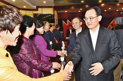 10月12日晚,市委書記李俊明、市長鄭連生等市領(lǐng)導(dǎo)到駐地看望參加市政協(xié)四屆一次會(huì)議的委員。(本報(bào)記者 馮曉磊 范濤 攝)