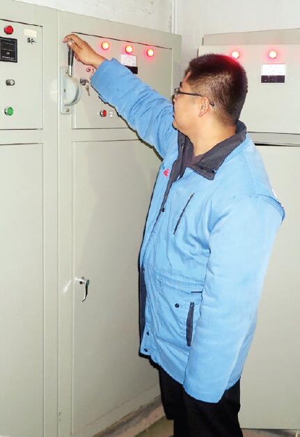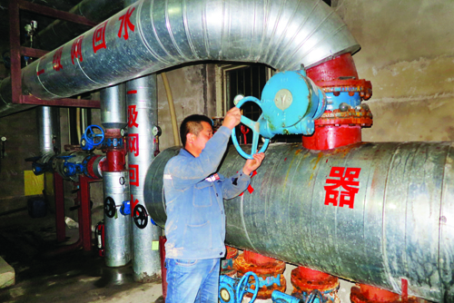 圖為供熱站工作人員正在調(diào)試機(jī)器