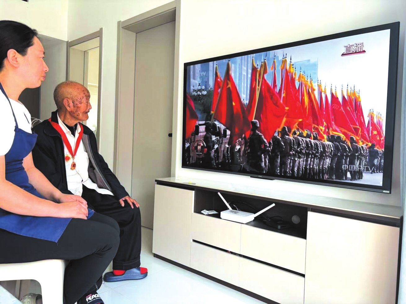神池縣板井村村民在村委會(huì)觀看紀(jì)念大會(huì)。續(xù)琴攝