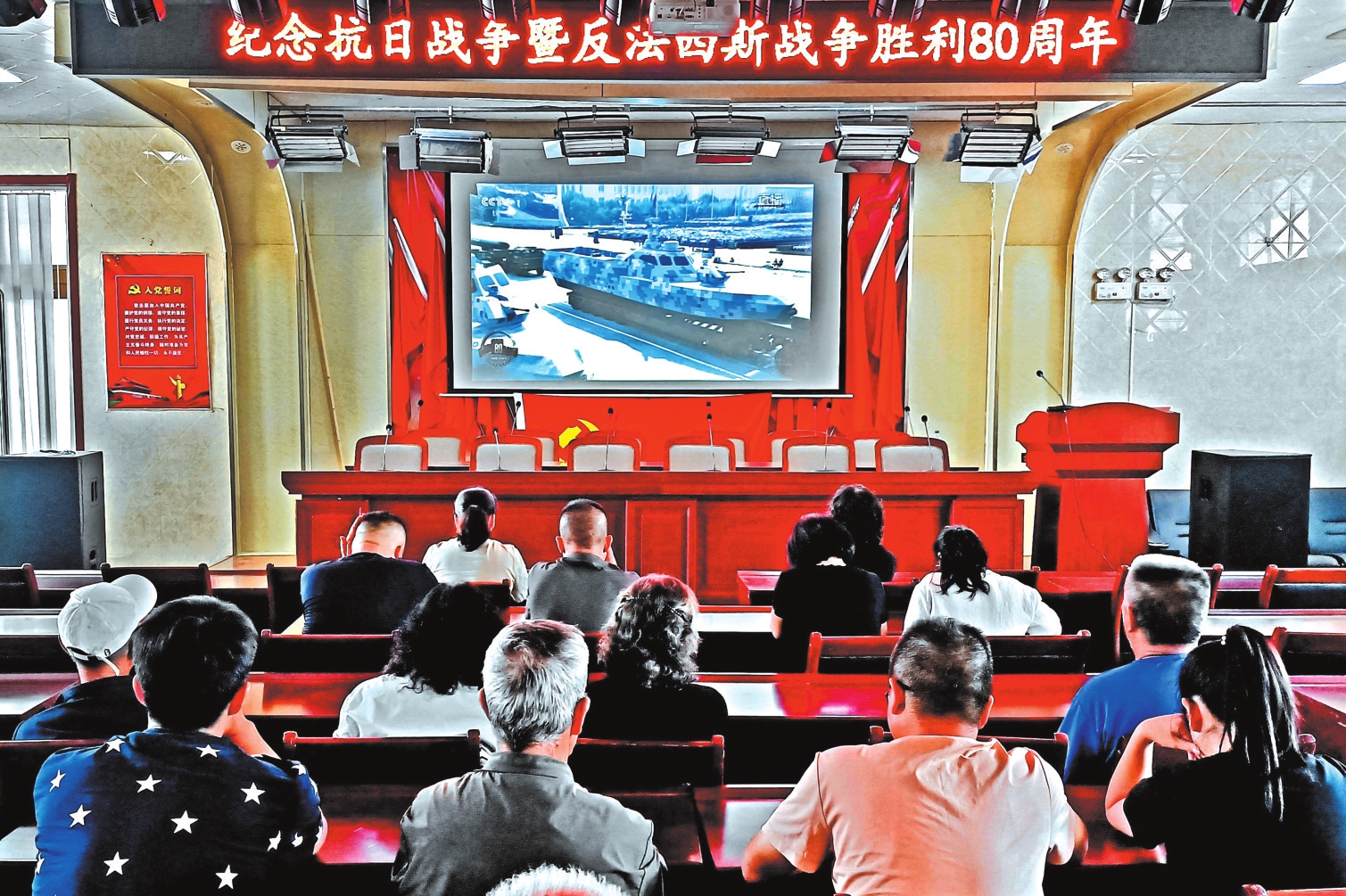 五寨縣前所鄉(xiāng)黨員干部觀看紀(jì)念大會(huì)。劉篤效攝