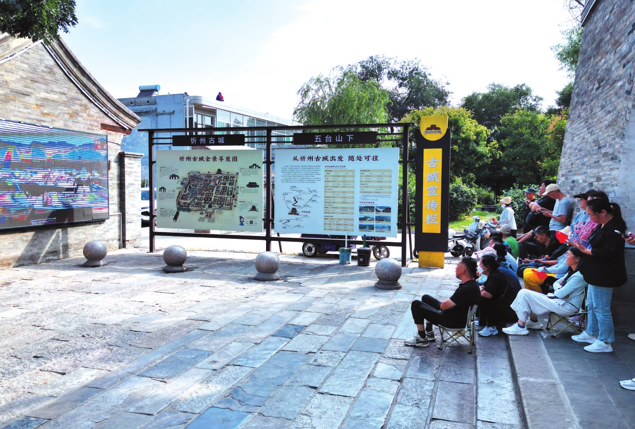 忻州古城,游客駐足觀看紀(jì)念大會(huì)。申健攝