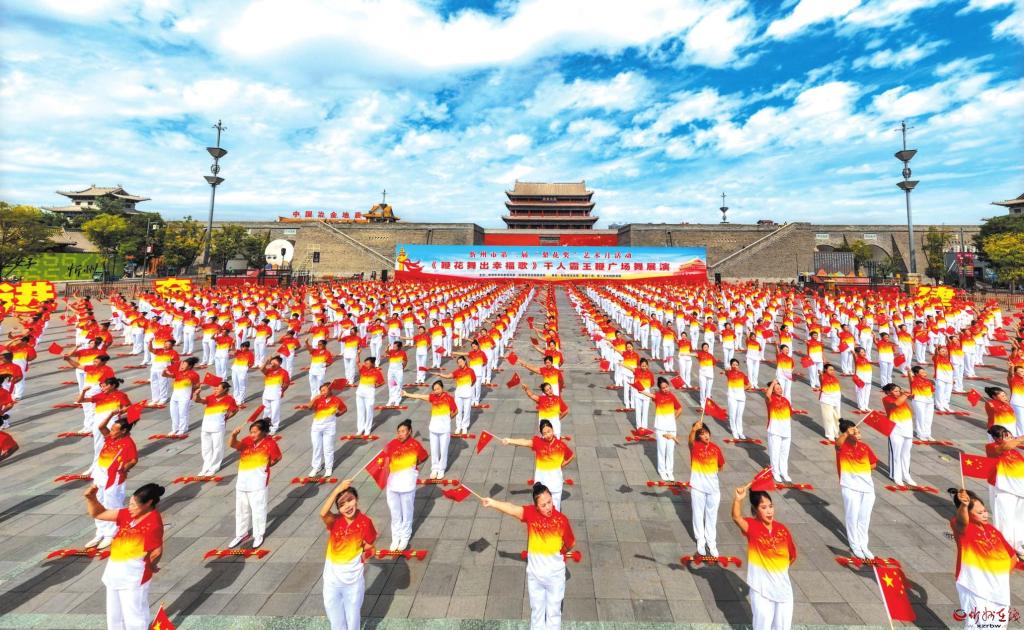 9月26日,來自全市14個縣(市、區(qū))代表隊的近千名舞者齊聚忻州古城,伴隨著配樂《鞭花舞出幸福歌》的激揚曲調(diào),共同演繹霸王鞭廣場舞,并齊聲合唱《歌唱祖國》,為即將到來的國慶節(jié)獻(xiàn)禮?;顒又校輪T們整齊劃一的動作、昂揚向上的精神風(fēng)貌,生動展現(xiàn)了對美好生活的向往,得到了廣泛好評。常麗琴攝
