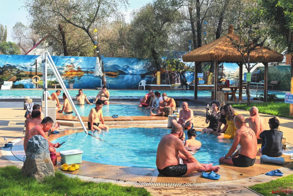 忻府區(qū)溫泉憑借其豐富的地?zé)豳Y源優(yōu)勢和優(yōu)美的自然環(huán)境,吸引了各地游客慕名而來。圖為游客在忻府區(qū)北合索溫泉康養(yǎng)小鎮(zhèn)享受悠閑時(shí)光。(記者 張存良攝)