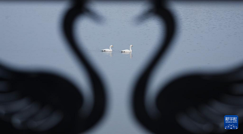 12月20日,游客在河南省三門峽市天鵝湖國家城市濕地公園觀賞天鵝。(新華社發(fā) 何五昌 攝)