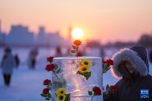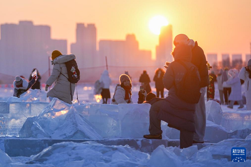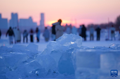 時(shí)下,“冰城”哈爾濱市正值冰雪旅游旺季。松花江哈爾濱段一處采冰場(chǎng),由于大量堆積高純凈度的冰塊,而被游客稱(chēng)為“鉆石?!?,成為網(wǎng)紅景區(qū)。只要是晴好天氣,都會(huì)有許多游客來(lái)到“鉆石?!本皡^(qū),欣賞浪漫的落日美景。