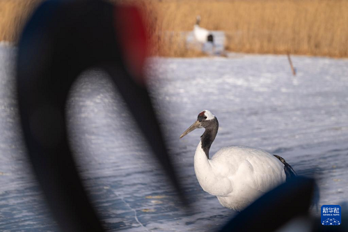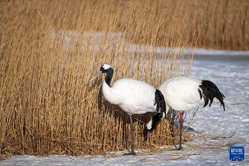 冬日時節(jié),黑龍江扎龍國家級自然保護區(qū)內白雪皚皚,丹頂鶴在寒風中覓食,上演一幅鶴舞冬日的純凈畫面。