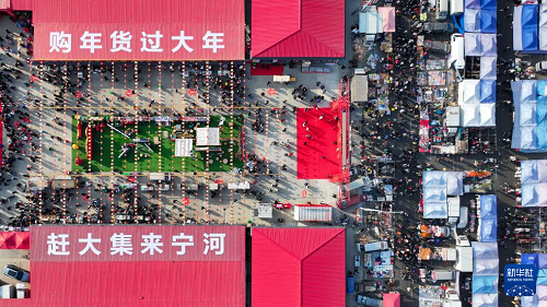 這是1月26日拍攝的天津蘆臺(tái)大集(無(wú)人機(jī)照片)。(新華社記者 孫凡越 攝)