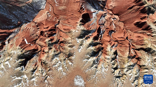 這是1月29日在內(nèi)蒙古烏蘭察布市四子王旗拍攝的紅崖臺(tái)地景觀(無人機(jī)照片)。(新華社記者 馬金瑞 攝) 紅崖臺(tái)地位于內(nèi)蒙古烏蘭察布市四子王旗北部,是內(nèi)蒙古四子王國家地質(zhì)公園的重要組成部分。這里山丘聳立、溝壑縱橫,山體呈現(xiàn)赤紅色。隆冬時(shí)節(jié),稀薄殘雪點(diǎn)綴其間,在蒼茫天地中勾勒出一幅靜謐而壯麗的自然畫卷。 (責(zé)任編輯:蔡文斌) |
