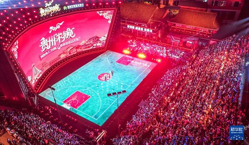 2月3日,人們在2026貴州“村晚”現(xiàn)場展示“姑媽”籃球。(新華社記者 楊文斌 攝)