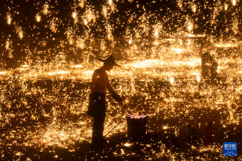 近日,首屆“浦東中國(guó)年味節(jié)”在上海市浦東新區(qū)黃浦江畔舉行,非遺“打鐵花”成為夜色中一道亮麗的風(fēng)景線(xiàn)。