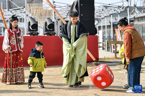2月25日,游客在山西太原古縣城參加趣味活動(dòng)。(新華社記者 曹陽 攝)