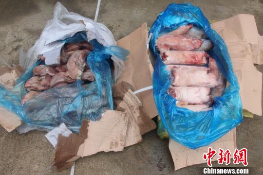 1月25日8時許,支隊瀾滄邊境檢查站執(zhí)勤官兵查獲3輛可疑貨車,當場從車廂內(nèi)查獲用麻布袋遮蓋的冰凍雞腳、豬腳等走私凍品105噸。1月27日19時30分,普洱邊防支隊支隊黃莊查緝點在323國道某段開展公開查緝,查獲2輛由景洪駛往昆明的貨車,發(fā)現(xiàn)車內(nèi)拉載的冰凍鴨掌等凍品外包裝均是英文標識,且沒有任何檢驗檢疫及運輸銷售等合法手續(xù)憑證,經(jīng)稱重共計9噸。如果沒有被邊防官兵查獲,那這些從境外走私入境的劣質(zhì)過期冰凍肉質(zhì)品,將在春節(jié)期間流入至少2萬戶家庭的餐桌。
