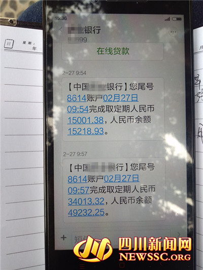 2月27日上午10時(shí)左右,羅大媽來到瀘州大山坪某銀行取定期存款?!斑@張卡是工資卡,經(jīng)常支取,究竟活期有多少余額,我也不清楚,但應(yīng)該不多?!绷_大媽告訴四川新聞網(wǎng)記者,自己有兩張定期存折,一張是1.5萬(wàn)的,另一張是9萬(wàn)。
