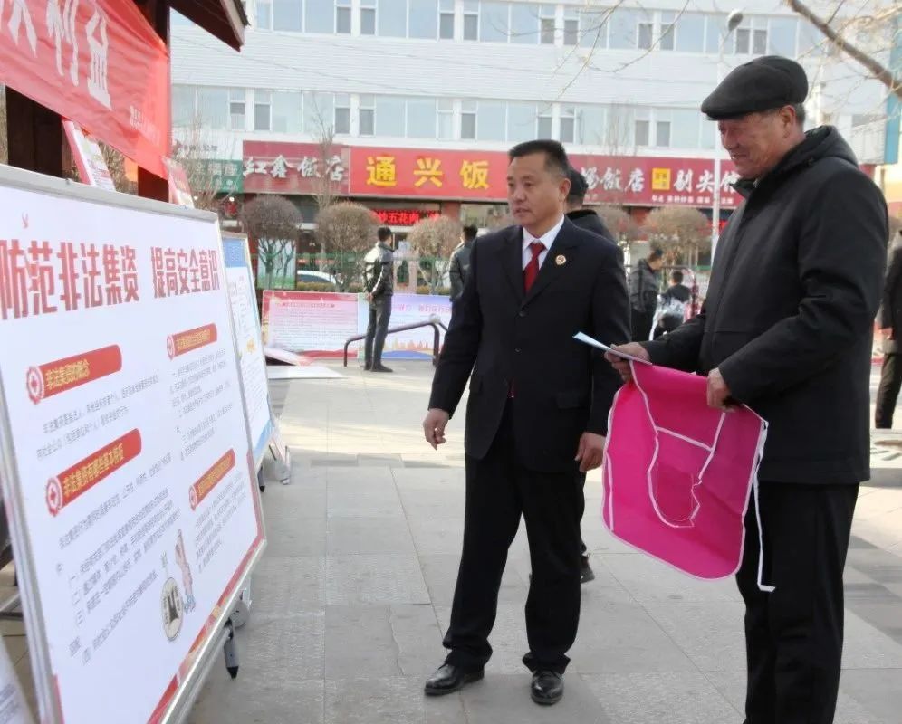 在縣南河灘廣場,檢察干警向來往群眾解讀《防范和處置非法集資條例》和非法集資相關(guān)內(nèi)容、舉報方式等,針對群眾提出的法律問題,耐心解答。同時,通過案例向群眾講述非法集資的表現(xiàn)形式、危害及防范措施,提醒群眾堅持高息“誘餌”不動心、面對“廣告”不崇拜、儲蓄“存款”不大意、熟人“熱心”不輕信、非法“集資”不參與,自覺抵制和遠離非法集資。此次宣傳活動通過懸掛橫幅、發(fā)放宣傳手冊、現(xiàn)場解答等方式共提供法律咨詢60余人次,發(fā)放宣傳手冊800余份。