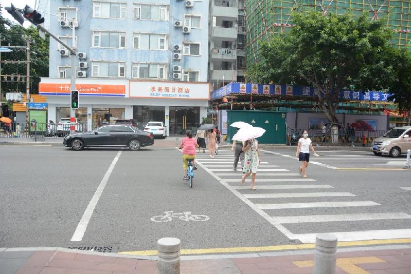 圖為8月1日記者拍攝的廈門體育路與育秀東路交叉口的非機動車與行人分流的斑馬線。新華社記者顏之宏 攝