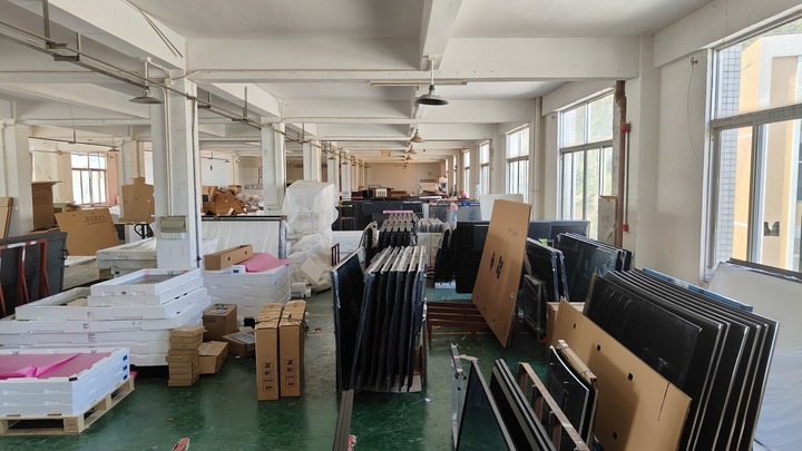 專案組查處違法組裝電視機(jī)的車間時(shí)發(fā)現(xiàn),庫(kù)房?jī)?nèi)堆積著大量電視機(jī)外殼、主板和白板顯示屏,還有很多品牌透明貼紙,以及部分準(zhǔn)備發(fā)出和退回的假冒品牌電視機(jī)。