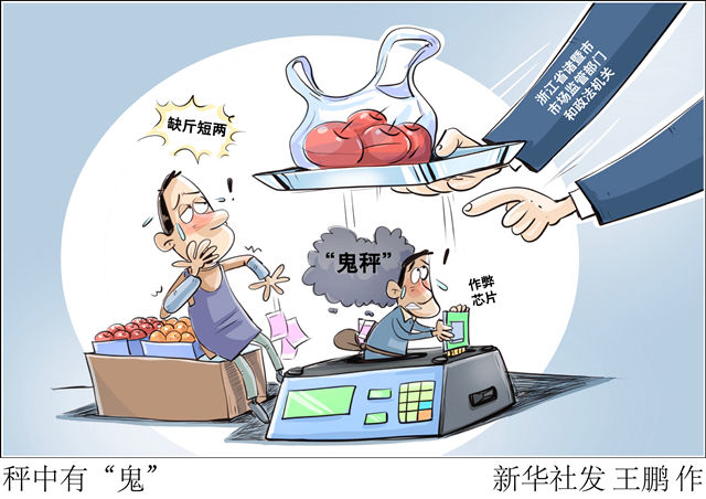 一臺小小的“鬼秤”,不僅侵害群眾合法權(quán)益,更有損公平誠信的市場環(huán)境。執(zhí)法部門要主動作為,為公序良俗撐腰,讓群眾利益得到保障;另一方面,遭遇缺斤短兩問題,消費者也不要忍氣吞聲,多和不法現(xiàn)象“較真”:買完菜上“安心秤”復稱一下,對不法行為堅決舉報。大家合力,一起讓“鬼秤”無處遁形。