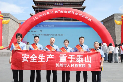 今年6月是第24個全國“安全生產(chǎn)月”。為深入貫徹習(xí)近平總書記關(guān)于安全生產(chǎn)工作的重要指示精神,持續(xù)推動“八號檢察建議”落地落實,6月16日,市檢察院黨組副書記、主持日常工作的副檢察長王金華帶隊參加全市“6·16安全宣傳咨詢?nèi)铡被顒樱瑖@“人人講安全 個個會應(yīng)急”主題,積極開展普法宣傳活動,切實提升企業(yè)和群眾安全生產(chǎn)意識和防范能力。