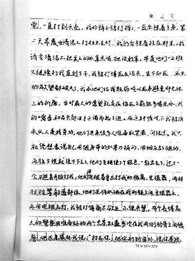 劉吉強(qiáng)還撰寫了一封控告信。控告信里,他描述了7天夢魘般的經(jīng)歷:辦案人員用腳踢他的臉,用手銬把他吊掛在鐵管做的橫梁上拳打腳踢,用電棍擊打身體的各部位。