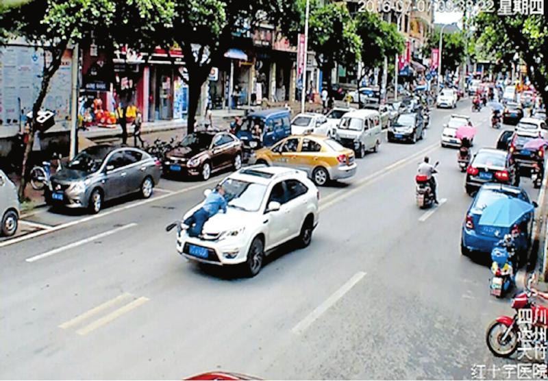 一輛白色的比亞迪轎車,載著一車乘客在市區(qū)橫沖直撞,并以時速50公里左右的速度,將一名執(zhí)法人員撞上引擎蓋,推行了300多米。緊接著,該轎車來了一個急轉(zhuǎn)彎,把執(zhí)法人員甩下地面后繼續(xù)逃跑……7月7日,電影中的“速度與激情”,在達(dá)州市大竹縣城真實(shí)上演。
