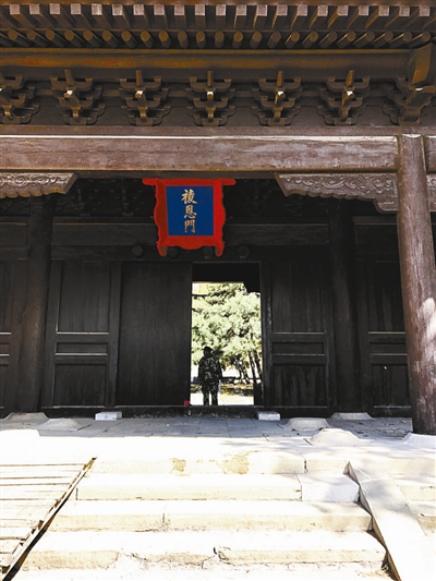 圖為裕陵的護(hù)陵員站在門口嚴(yán)禁游客入內(nèi) 思陵石燭臺(tái)被盜的消息經(jīng)媒體曝光已近一周,目前十三陵各陵園的防范情況如何?除思陵外,其他陵園是否還存有文保安全隱患?對(duì)此,北京青年報(bào)記者昨日前往十三陵進(jìn)行探訪。 北京青年報(bào)記者昨日在對(duì)十三陵進(jìn)行探訪時(shí)發(fā)現(xiàn),3座開放的陵園安保嚴(yán)密;10座未開放陵園均加強(qiáng)防范,嚴(yán)禁游客入內(nèi)。另外,北青報(bào)記者還從十三陵特區(qū)辦事處獲悉,未開放陵園已取消預(yù)約參觀,何時(shí)恢復(fù)未知。 目前,十三陵除長陵、定陵、昭陵3座帝陵開放外,其余10座陵園均未開放,分別是德陵、永陵、景陵、獻(xiàn)陵、慶陵、裕陵、茂陵、泰陵、康陵和思陵。 據(jù)北青報(bào)記者了解,10座未開放陵園的日常安全保衛(wèi)由十三陵特區(qū)辦事處保衛(wèi)科負(fù)責(zé),聘用周邊村民作為護(hù)陵員,分別駐守在陵內(nèi)看護(hù)。北青報(bào)記者昨日對(duì)10座未開放的帝陵探訪時(shí),發(fā)現(xiàn)各陵均加強(qiáng)了管理和防范,其中有些陵園的大門緊閉;有些在陵外又加裝了護(hù)欄,對(duì)陵區(qū)周邊進(jìn)行二次防護(hù);還有一些陵園的護(hù)陵員則嚴(yán)禁游客入內(nèi)。 此前,十三陵一些未開放的陵園可進(jìn)行預(yù)約參觀,主要面向高端游客和專業(yè)學(xué)者。昨天,北青報(bào)記者以預(yù)約參觀的名義致電十三陵特區(qū)辦事處,一位工作人員稱,已經(jīng)暫停對(duì)未開放陵園的預(yù)約參觀,“已經(jīng)有一段時(shí)間,跟思陵的事情有關(guān),現(xiàn)在加強(qiáng)管理了?!敝劣诮窈笫欠襁€會(huì)恢復(fù),該工作人員表示不知情。 此外,根據(jù)國家文物局發(fā)布的信息,13座陵園均設(shè)置了一定的安防設(shè)施,長陵、定陵、昭陵設(shè)置了視頻監(jiān)控和一些入侵報(bào)警探測(cè)器,其余10座陵園均設(shè)置了視頻監(jiān)控。北青報(bào)記者在昨日的探訪中,的確看到各陵園的門外或墻上都有監(jiān)控設(shè)備。裕陵的護(hù)陵員稱,今后還會(huì)增加監(jiān)控設(shè)備的數(shù)量。十三陵特區(qū)辦事處的工作人員也表示,政府正在加大對(duì)監(jiān)控設(shè)備的投入力度。 探訪一 德陵 永陵 泰陵 康陵 大門緊閉 陵門正在修繕 德陵是明熹宗的陵寢,位于十三陵整個(gè)陵區(qū)的最東端。 昨天上午,北青報(bào)記者到達(dá)德陵時(shí),陵門正在進(jìn)行修繕,門前搭著不銹鋼的支架,4名施工人員正在修補(bǔ)房頂?shù)牧鹆?。德陵的大門緊閉,北青報(bào)記者敲門,無人應(yīng)答。 隨后,北青報(bào)記者又來到緊鄰德陵的永陵,永陵是嘉靖皇帝的陵寢,規(guī)模僅次于長陵。同樣,永陵斑駁的朱紅色大門也緊閉著,里面無人應(yīng)答。除了德陵和永陵,泰陵、康陵等陵園的大門也都緊閉著。 探訪二 慶陵 裕陵 思陵 護(hù)陵員嚴(yán)禁游客入內(nèi) “我們大老遠(yuǎn)來十三陵玩,路過這座陵,想進(jìn)去看看?!弊蛱焐衔纾陸c陵門外,一對(duì)游客央求著護(hù)陵員。慶陵是十三陵中未開放的一座帝陵,由于陵門早已毀壞,現(xiàn)在只能用一道2米多高的帶鎖鐵護(hù)欄作為臨時(shí)的“大門”??梢钥吹剑陜?nèi)的前殿只剩下地基,但陵內(nèi)的明樓保存完好。 “對(duì)不起,我們現(xiàn)在有規(guī)定,游客一律不能入內(nèi)?!弊o(hù)陵員婉拒了這對(duì)游客,他們只好站在鐵護(hù)欄外拍了幾張照片便匆匆離去。護(hù)陵員表示,以前慶陵雖然也不開放,但管理相對(duì)較松,有些游客可以趁機(jī)混進(jìn)去。自從思陵石燭臺(tái)被盜的事件發(fā)生后,上面有通知,游客一律不能進(jìn)入陵區(qū)內(nèi),鐵護(hù)欄也一直鎖著。“誰知道來的都是什么人,萬一出了事情責(zé)任可就大了?!?/p> 在同樣未開放的裕陵門前,北青報(bào)記者也遭到“婉拒”。裕陵在2013年剛結(jié)束修繕,復(fù)建了祾恩門,整個(gè)陵區(qū)保護(hù)完好。半扇虛掩的木門外,護(hù)陵員正拿著一張登記表,對(duì)4名給樹木噴藥的工人進(jìn)行嚴(yán)格登記。該護(hù)陵員告訴北青報(bào)記者,現(xiàn)在管理很嚴(yán),沒有十三陵特區(qū)辦的工作人員陪同,根本進(jìn)不了陵內(nèi)。 昨天,北青報(bào)記者還對(duì)思陵進(jìn)行了探訪。思陵位于十三陵景區(qū)的西南方向,與其他12座陵園相比,思陵的地理位置不僅偏僻,而且規(guī)模較小,整體簡陋,繞陵一圈不到10分鐘。與其他陵園不同,思陵沒有正規(guī)的陵門,唯一的大門是在墻上開的一道銹跡斑斑的鐵門。還有一點(diǎn)與其他陵園不同的是,思陵門前的石碑四周沒有加裝護(hù)欄。昨天中午,一位準(zhǔn)備進(jìn)門的護(hù)陵員面對(duì)提問一言不發(fā),并隨手關(guān)上鐵門。 探訪三 茂陵 景陵 獻(xiàn)陵 陵外裝鐵護(hù)欄 北青報(bào)記者探訪時(shí)注意到,一些陵園還在陵外加裝鐵護(hù)欄,確保陵園周邊的安全。 位于長陵村的景陵,帶尖兒的鐵護(hù)欄在陵門外20米處便將進(jìn)入陵區(qū)的道路阻斷。北青報(bào)記者剛走進(jìn)鐵護(hù)欄,此時(shí)坐在旁邊聊天的一位男護(hù)陵員立刻警覺地跑過來,詢問來意,并迅速將鐵護(hù)欄上鎖。 獻(xiàn)陵此前經(jīng)過修繕,紅墻黃瓦的陵門裝修精美。在獻(xiàn)陵東側(cè)的陵墻外,加裝了一排白色的圍欄,有效地將陵區(qū)