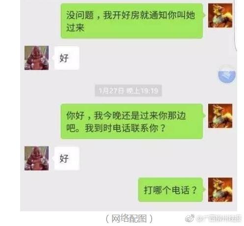 因擔心“服務員”的“質量”不好,阿強讓“夢醒時分”幫忙挑選一個好一點的“服務員”。對方 說沒問題,并說將“服務員”的照片發(fā)給他挑選,覺得哪個合心水就安排哪個過來。想不到對方的服 務這么好,阿強心里非常興奮。 不過,阿強的興奮很快被氣憤所代替——因為當“夢醒時分”從微信上發(fā)過來的女子照片,竟然是阿強在外地打工的老婆!