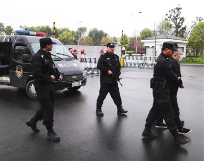 3月26日上午10時(shí)30分許,一輛警車駛?cè)胂删涌h公安局院內(nèi)。車門打開,四名荷槍實(shí)彈的警察,押著一名中等身材的光頭男子,向?qū)徲嵤易呷ァ?/p>