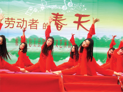 為慶祝即將到來的五一國際勞動節(jié),原平市總工會于近日組織各基層工會的群眾演員赴原平市經(jīng)濟技術(shù)開發(fā)區(qū),給奮戰(zhàn)在一線的工人師傅送去了精彩的文藝節(jié)目。圖為演出現(xiàn)場。(賈政卿 攝)