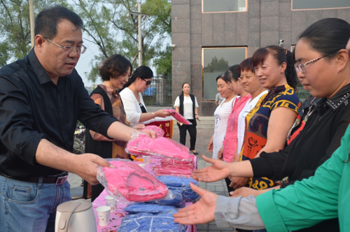 山西福來(lái)珠寶有限公司是由經(jīng)營(yíng)中高端珠寶首飾,鉆石鑲嵌產(chǎn)品,是集采購(gòu)、設(shè)計(jì)、鑲嵌、連鎖零售為一體的珠寶公司。為回饋社會(huì),弘揚(yáng)正氣,特意組織回T裇衫捐贈(zèng)環(huán)衛(wèi)工人。并對(duì)衣服進(jìn)行二次加工增加反光條,以適應(yīng)環(huán)衛(wèi)工人工作需要,代表山西福來(lái)珠寶有限公司進(jìn)行捐贈(zèng)的趙曉平總經(jīng)理深情地說(shuō):1300件T恤只是表達(dá)了福來(lái)珠寶全體員工對(duì)環(huán)衛(wèi)工人的崇高問(wèn)候!忻州市民感謝環(huán)衛(wèi)工人的默默付出,用我們的行動(dòng)倡議各屆人士關(guān)愛(ài)環(huán)衛(wèi)工人、愛(ài)護(hù)環(huán)境衛(wèi)生,為城市建設(shè)出一份力量!今天看到一張張純樸的臉,真的是深有感觸,勞動(dòng)人民是那么知足和真摯!真的很開(kāi)心,幫助別人是快樂(lè)的!撐著滿滿的愛(ài),抬手灑向每個(gè)人,不需要左顧右盼,真好!(郭劍鳴)