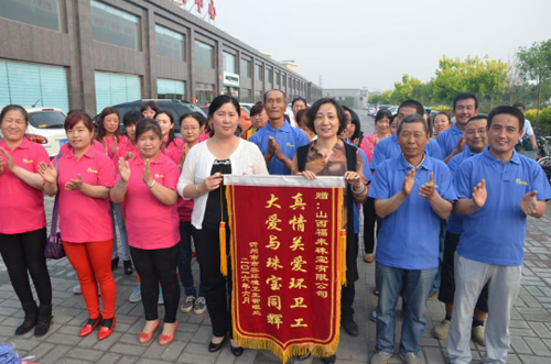 六月七日,忻州知名企業(yè)“山西福來(lái)珠寶有限公司”,向忻州市環(huán)衛(wèi)處全體環(huán)衛(wèi)工人捐贈(zèng)1300件價(jià)值近五萬(wàn)元的T裇衫,供環(huán)衛(wèi)工人夏季作業(yè)避暑,同時(shí)呼吁社會(huì)各界愛(ài)護(hù)環(huán)境衛(wèi)生,關(guān)愛(ài)環(huán)衛(wèi)工人。市環(huán)衛(wèi)處處長(zhǎng)石建新、副處長(zhǎng)張林霞一同出席捐贈(zèng)儀式,并代表市環(huán)衛(wèi)處向山西福來(lái)珠寶有限公司回贈(zèng)錦旗,以示感謝。
