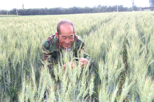 6月14日,農(nóng)民在原平市平地泉村地頭查看麥苗生長(zhǎng)情況。該市積極引導(dǎo)農(nóng)民落實(shí)好一噴三防、拔草除雜等關(guān)鍵田管措施,確保種子純度。小麥進(jìn)入飽滿期,長(zhǎng)勢(shì)良好,豐收在望。(褚震 攝)