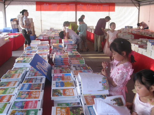 書展現(xiàn)場為240平方米的帳篷房,中外經(jīng)典名著、歷史、藝術(shù)、科學(xué)、生活、少兒類書籍琳瑯滿目,約有六、七千冊。所有圖書均可免費(fèi)閱讀;學(xué)生、教師、軍人等重點(diǎn)群體可憑相關(guān)證件享受優(yōu)惠購書。舉辦方竭力豐富圖書品種、提升圖書品質(zhì),多展出群眾買得起、看得懂、用得上的圖書,確保以充足的資源、優(yōu)惠的價格、優(yōu)質(zhì)的服務(wù)向廣大群眾提供優(yōu)秀出版物。雨過天晴,前來閱讀、購買的男女老幼絡(luò)繹不絕。