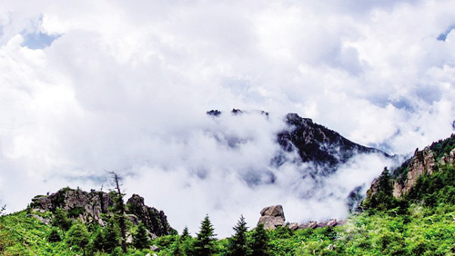 蘆芽山系管涔山的主峰,位于寧武縣境內(nèi),海拔2739 米。這里峰巒重疊,簇?fù)泶笮?00 多座山峰,山峰尖峭,怪石嶙峋,林木茂密;夏季的蘆芽山多陣雨,陣雨過后日出天晴,必有氣勢(shì)磅礴的云霧景觀出現(xiàn),如夢(mèng)幻仙境,令游人迷醉。(曹建國)