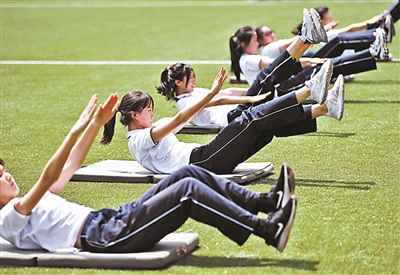 仰臥起坐,慢跑、拋擲實心球、排球……昨天上午10時35分,北京市第十八中學初三(8)班同學們的體育課開始了。3位體育老師帶著同學們在操場上進行體育鍛煉。據(jù)悉,下月中旬,本市初三的學子們將迎來中考體育考試。與往年不同,今年北京中考體育考試在考試時間上調(diào)整為6月10日開始、7月1日前完成。在組織形式上改為隨堂考試。