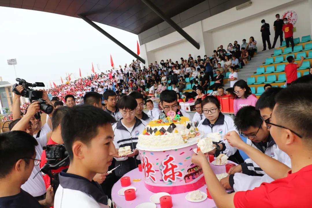 十八歲,成年成人;十八歲,成長成才。學(xué)校每年在這個(gè)時(shí)候都會為學(xué)子們舉行集體生日,家長們則為每個(gè)班準(zhǔn)備了生日蛋糕,在父母、師長的見證和祝福下,同學(xué)們走向人生的新階段。年級主任解鴻志、張高強(qiáng)老師共同推來一個(gè)巨型蛋糕,老師們一齊向?qū)W生祝福,校領(lǐng)導(dǎo)共同為學(xué)生點(diǎn)燃生日蠟燭,伴隨著《生日快樂》的歌聲,同學(xué)們雙目微閉,雙手合十,面對父母、師長,面對自己憧憬的未來,默默許下美好愿望。