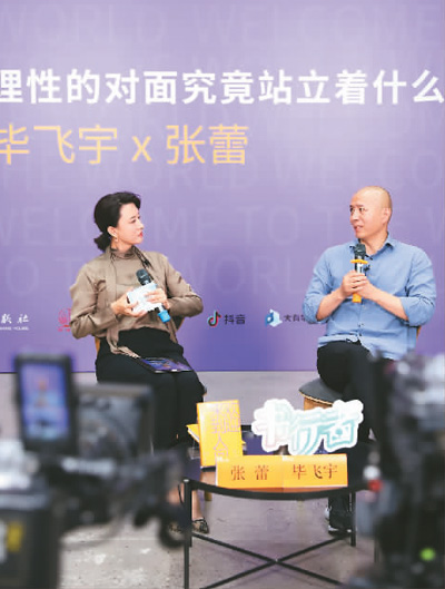 本文作者之一、《書(shū)行者》節(jié)目主理人張蕾(左)在《書(shū)行者》節(jié)目現(xiàn)場(chǎng)。