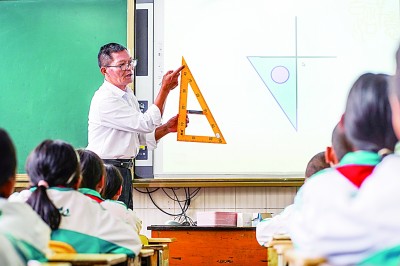 堅(jiān)守三尺講臺(tái)三十九載的山村教師楊紅軍在為學(xué)生授課。新華社發(fā)