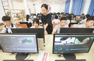 圖為河北省邯鄲市涉縣數(shù)字媒體專業(yè)學(xué)生在老師指導(dǎo)下學(xué)習(xí)影視后期剪輯。新華社發(fā)(郝群英攝)