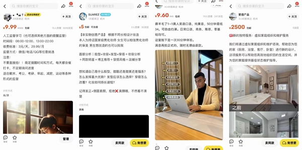 大賽期間,學生們掛出了監(jiān)督學習、口語練習、妝造設計等豐富的特色商品。網絡截圖