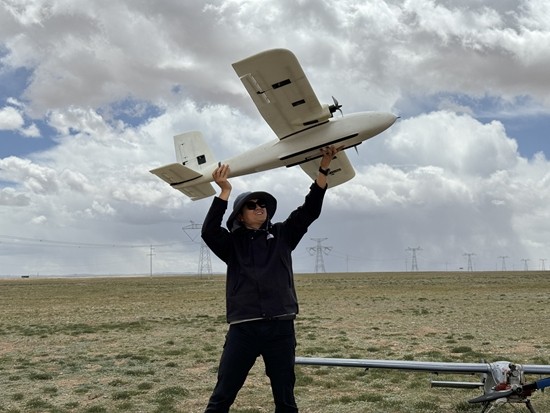 桂維振在可可西里放飛無(wú)人機(jī)。北京工業(yè)職業(yè)技術(shù)學(xué)院供圖