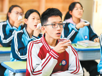 昆都侖區(qū)一所中學(xué)的學(xué)生使用英語聽說學(xué)習(xí)平臺(tái)進(jìn)行練習(xí)。昆都侖區(qū)教育局供圖