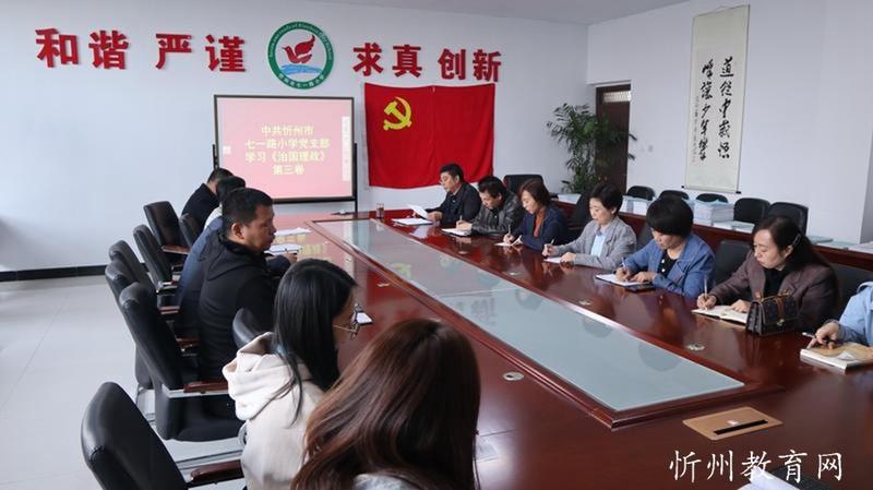 忻州市七一路小學(xué)網(wǎng)訊:10月19日,中共忻州市七一路小學(xué)黨支部專題學(xué)習(xí)《習(xí)近平談治國理政》第三卷。黨支部書記靳茂文作專題報(bào)告,全體黨員參加了會(huì)議,會(huì)議由黨辦主任史小榮主持。