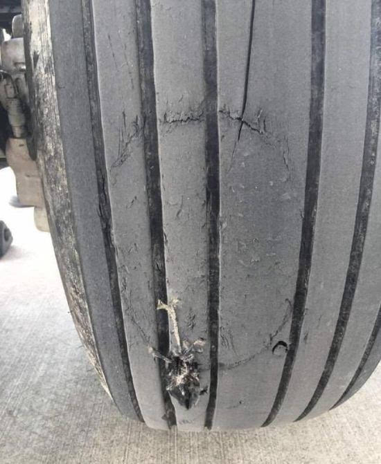 飛機輪胎受損嚴重