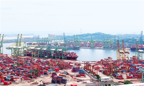 運(yùn)作中的新加坡港,是世界最大的集裝箱港口之一。本報(bào)駐新加坡記者 劉 威攝