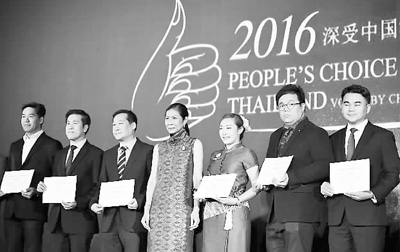 泰國國家旅游局此前公布2016年度“最受中國游客歡迎獎”評選結(jié)果,希望評選能促進泰國旅游業(yè)質(zhì)量不斷提高,吸引更多中國游客。圖為頒獎典禮上,泰官員為獲獎機構(gòu)代表頒發(fā)獲獎證書。新華社記者 李芒茫攝