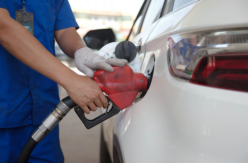資料圖片:5月25日,河北省武邑縣一家加油站的工作人員在為汽車(chē)加油。新華社記者 朱旭東 攝
