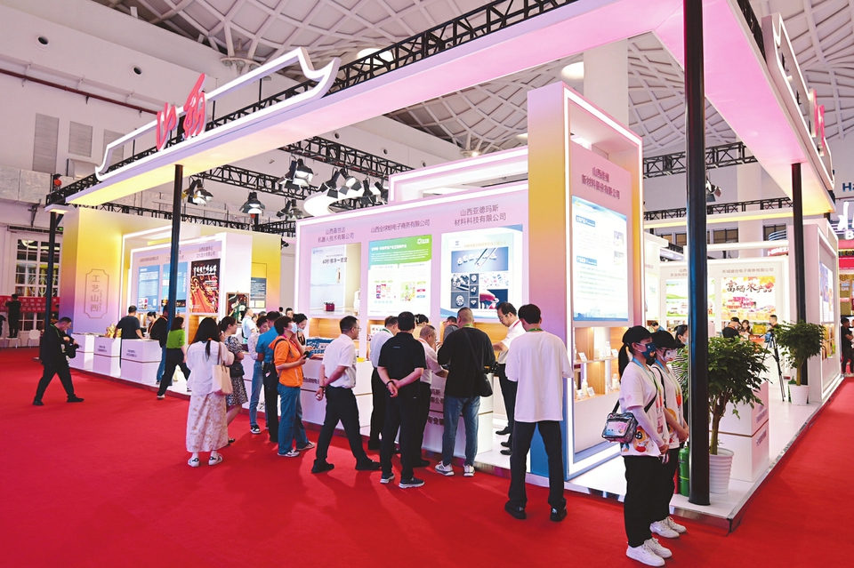 4月10日,第三屆中國(guó)國(guó)際消費(fèi)品博覽會(huì)現(xiàn)場(chǎng),山西展區(qū)吸引了眾多商客。 本報(bào)記者孫榮祥攝